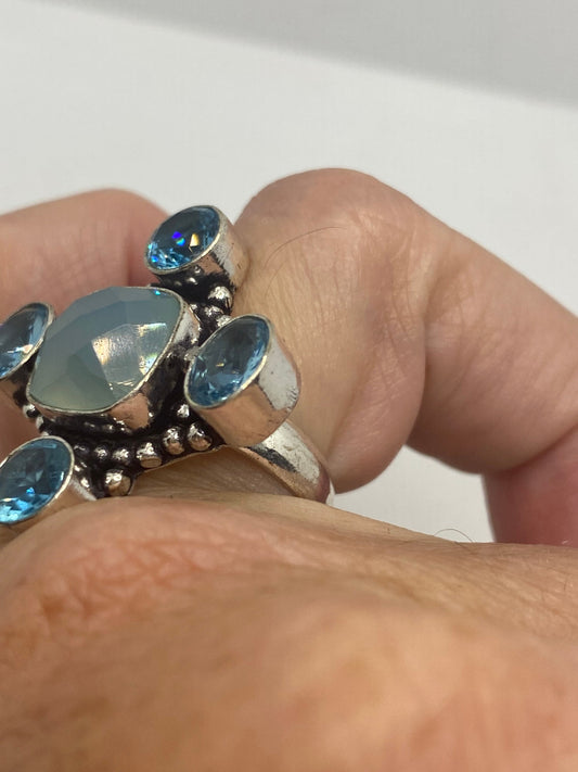 Vintage Deep Blue Sapphire White Bronze Silver Cocktail Ring
