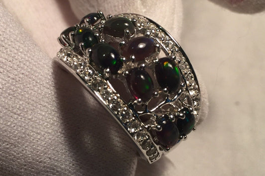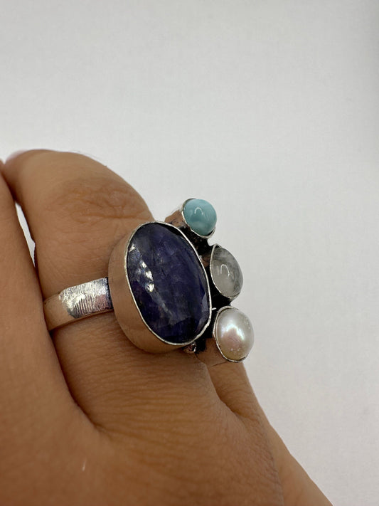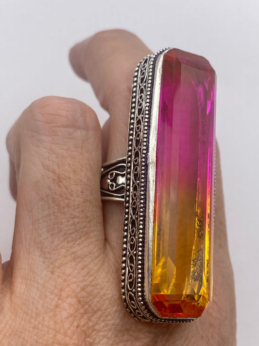 Vintage Handmade Green and Purple Fire Opal Setting 925 Sterling Silver Gothic Ring