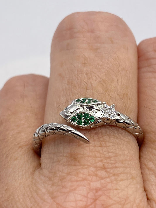 Vintage Snake Ring White Gold Filled Crystal Cocktail Ring