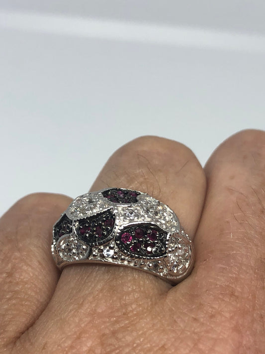 Vintage Handmade Pink Tourmaline and White Sapphire 925 Sterling Silver Gothic Ring