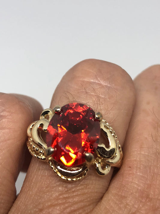 Vintage Handmade Orange Toumaline look Crystal Golden 925 Sterling Silver Gothic Ring