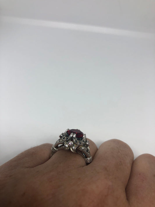 Vintage Handmade Red Tourmaline look Crystal 925 Sterling Silver Gothic Ring