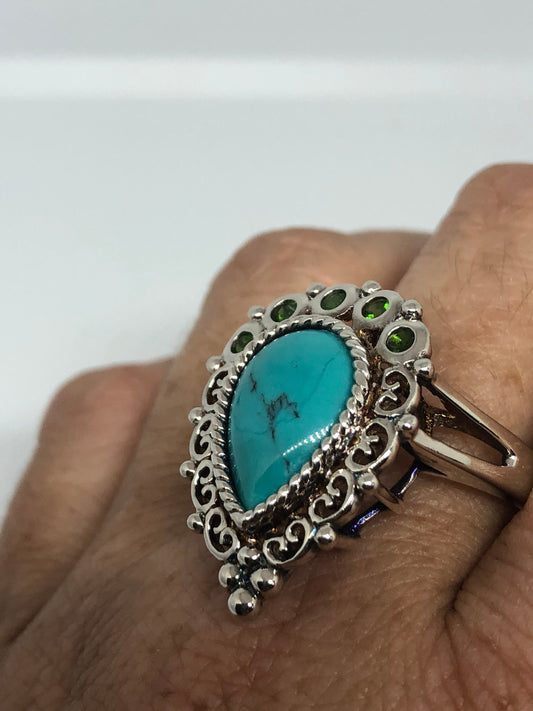 Vintage Turquoise Gemstone 925 Sterling Silver Celtic Ring