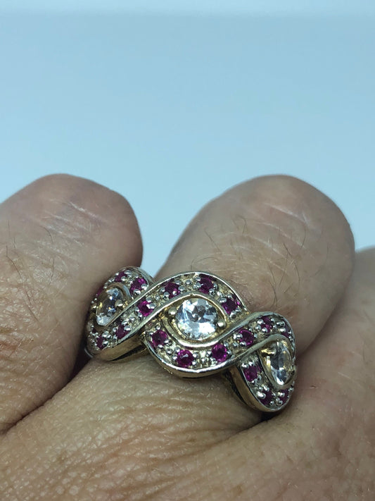Vintage Pink Toumaline and White Sapphire 925 Sterling Silver Band Ring