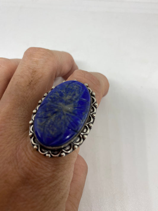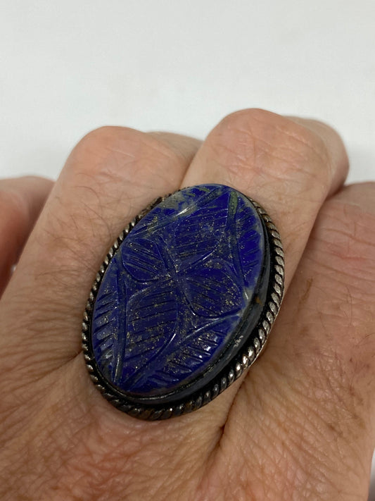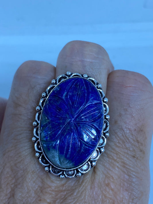 Vintage Blue Flower Carved Lapis Lazuli Ring