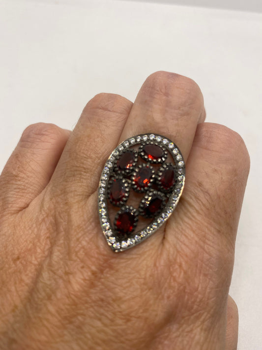 Vintage Red Garnet 925 Sterling Silver Ring