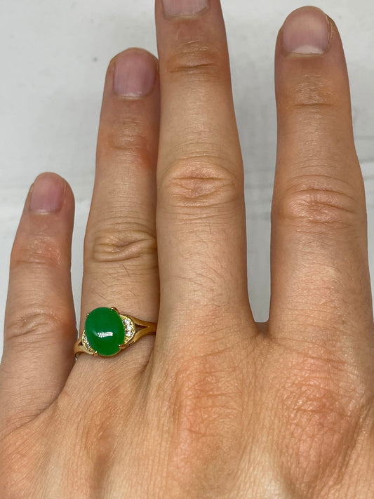 Vintage Lucky Green Nephrite Jade Gold Filled Cocktail Ring