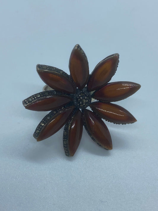 Vintage Genuine Red Carnelian 925 Sterling Silver Marcasite Ring