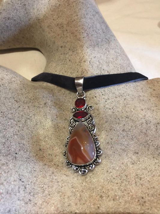 Vintage Carnelian agate Choker Necklace Pendant