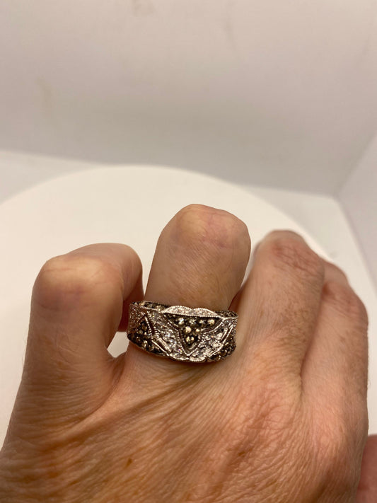 Vintage Campaign Diamond and White Sapphire 925 Sterling Silver Cocktail Rose Ring