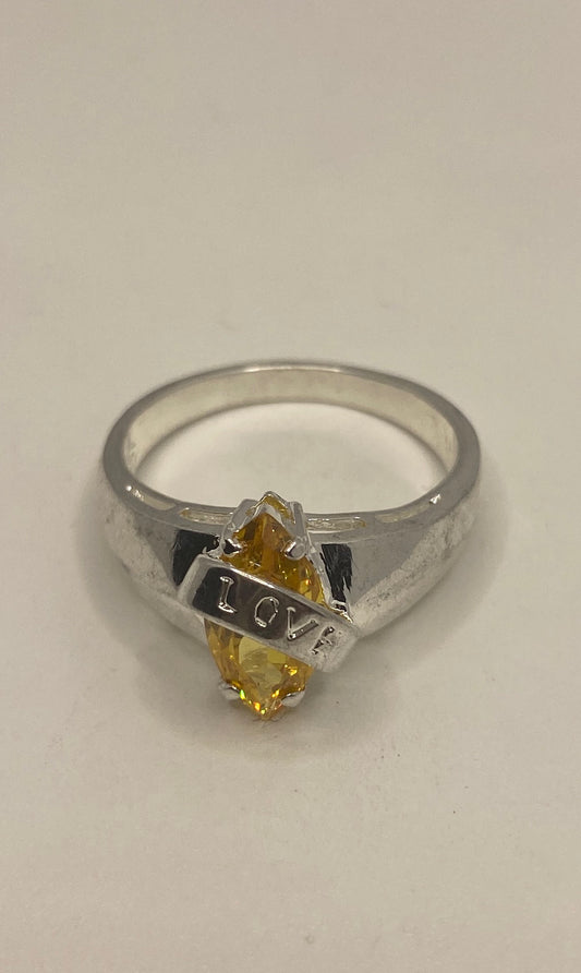 Vintage Canary Yellow CZ Deco Love Ring 925 Sterling Silver