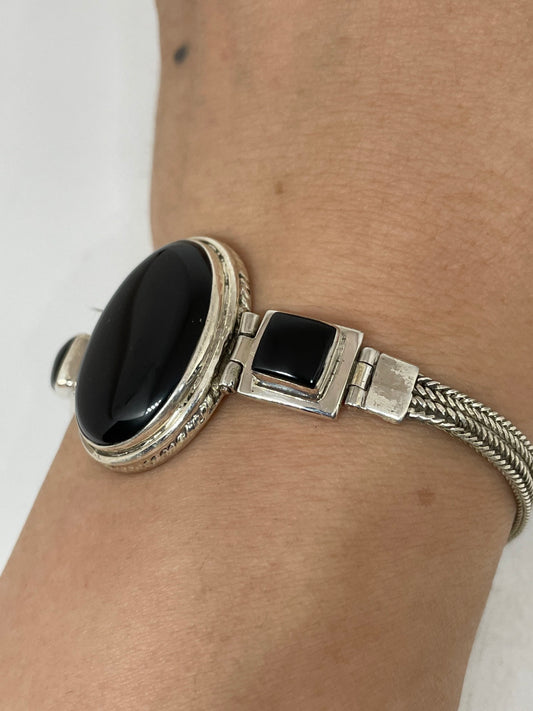 Handmade Turkish Ottoman Styled 925 Sterling Silver Black Onyx Bracelet