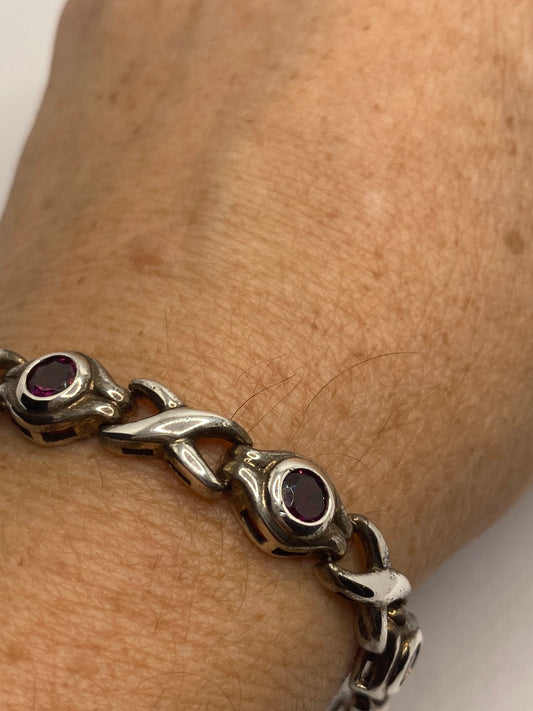 Vintage Bohemian Red Garnet Bracelet 925 Sterling Silver