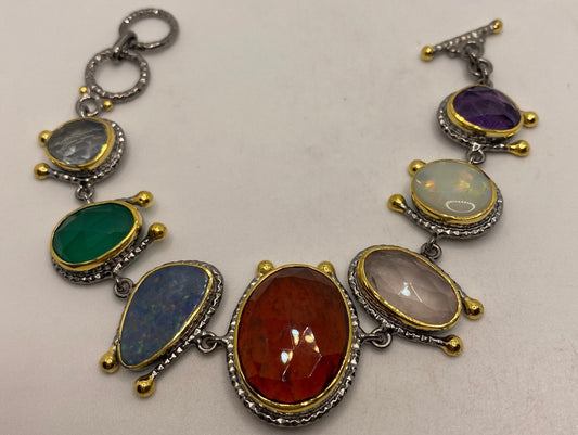 Vintage Mixed Genuine Gemstones 925 Sterling Silver Bracelet