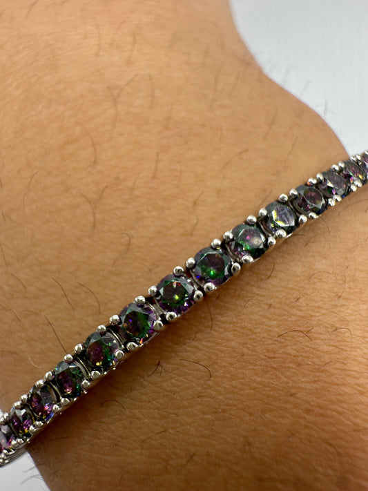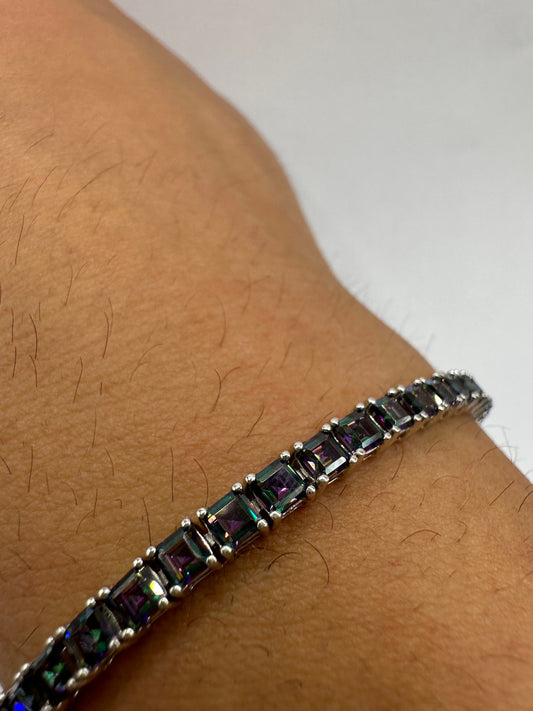 Vintage Mystic Blue Topaz 925 Sterling Silver Tennis Bracelet