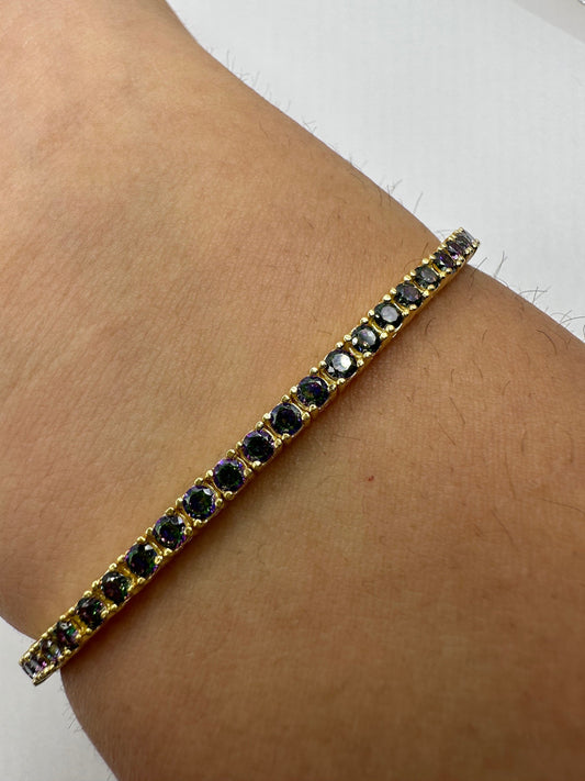 Vintage Mystic Blue Topaz Golden 925 Sterling Silver Tennis Bracelet