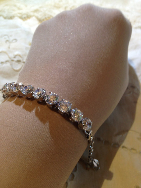 Vintage Handmade Cubic Zirconia in 925 Sterling Silver Tennis Bracelet