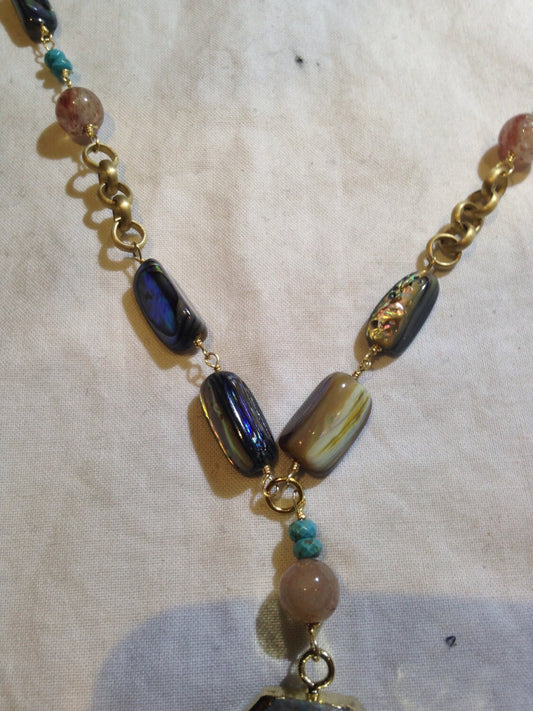Hand Made Turquoise Agate Quartz and Crystal Necklace