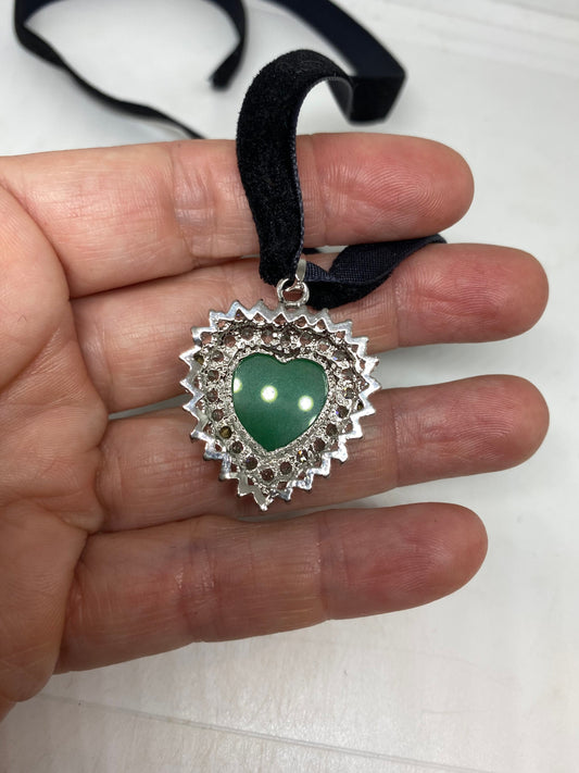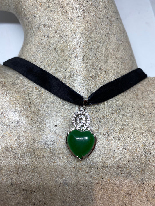 Vintage Green Jade Heart Choker Gold Finish Necklace Pendant