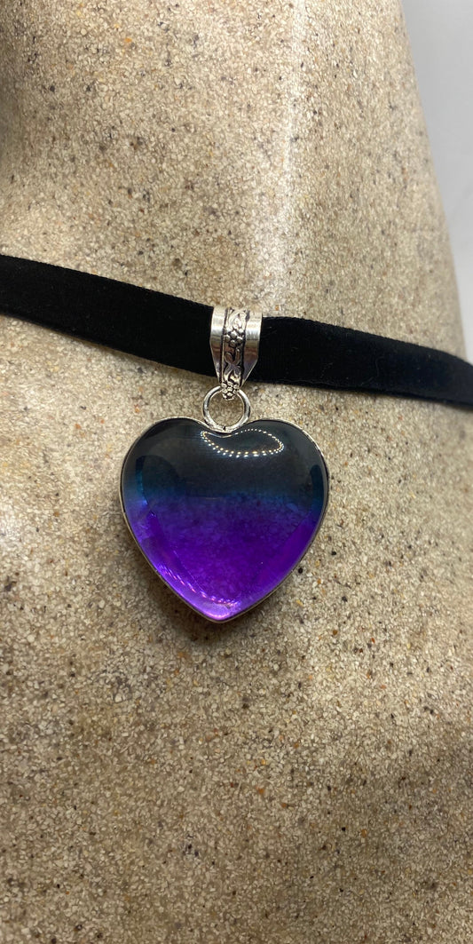 Vintage Heart Antique Purple Glass Choker Necklace