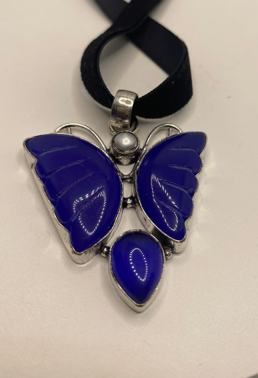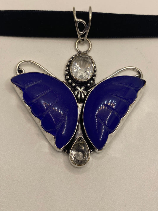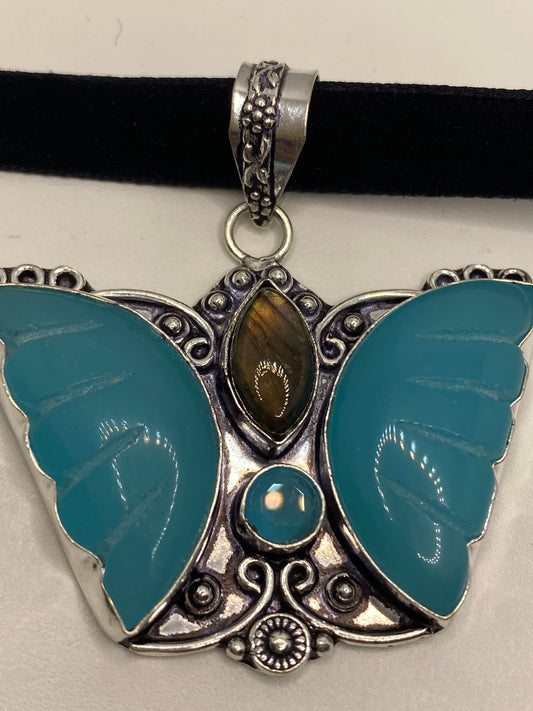 Vintage Blue Chalcedony Butterfly Choker Necklace