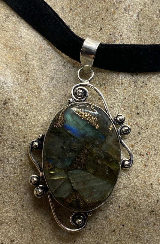 Vintage Rainbow Labradorite Mosaic Choker Pendant Necklace