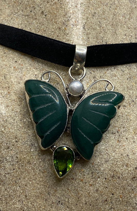 Vintage Green Onyx Butterfly Choker Necklace
