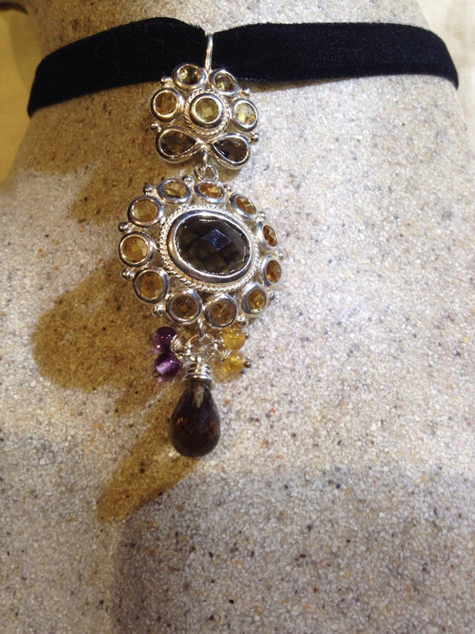 Vintage Necklace Citrine Smoky Topaz 925 Sterling Silver Necklace