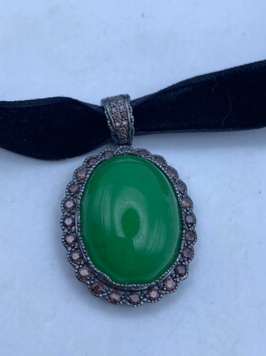 Vintage Green Jade Choker Gold Finish Necklace Pendant