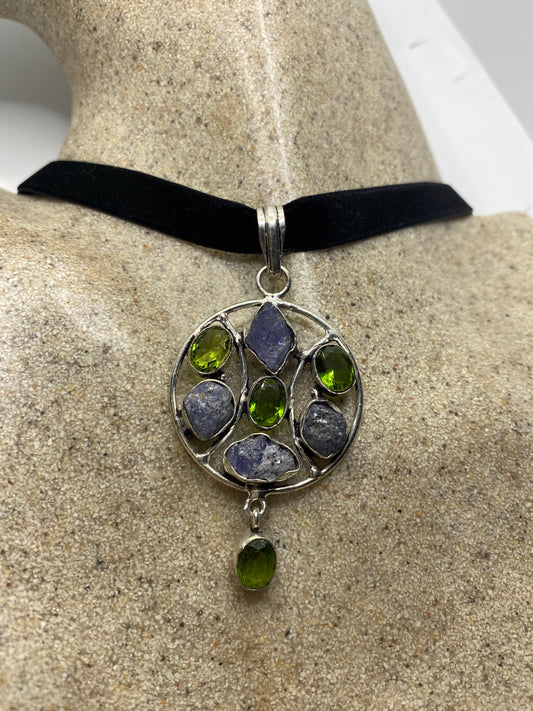 Vintage Raw Tanzanite Peridot Choker Necklace