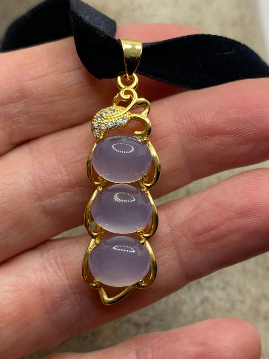 Vintage Rose Quartz Choker Golden Bronze Pea Pod Pendant Necklace