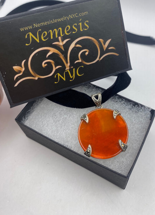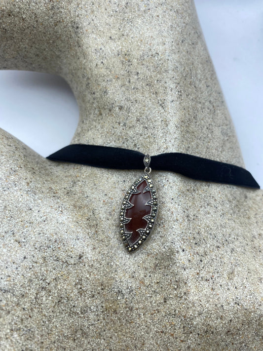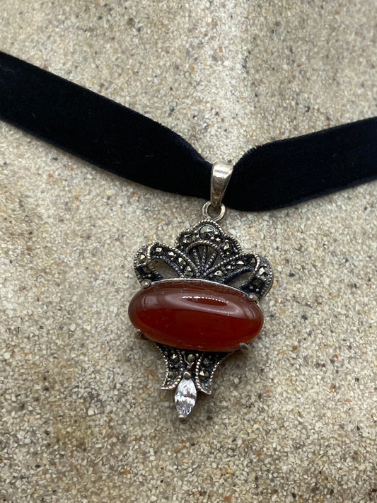 Vintage Marcasite Carnelian Choker 925 Sterling Silver Flower Necklace