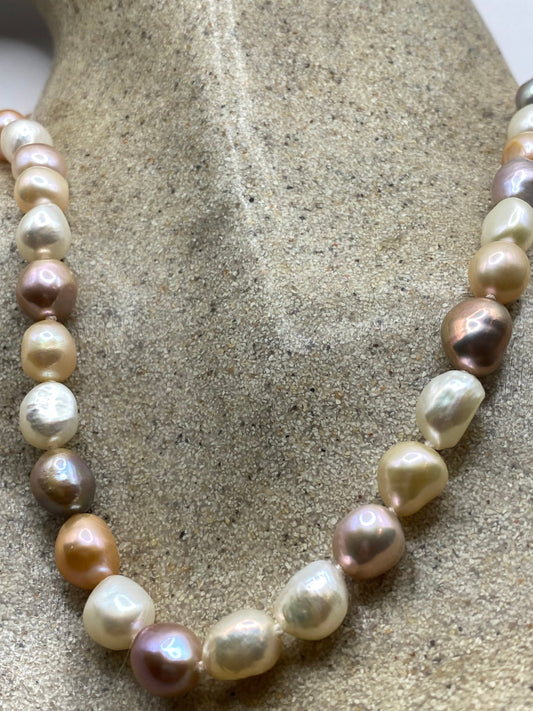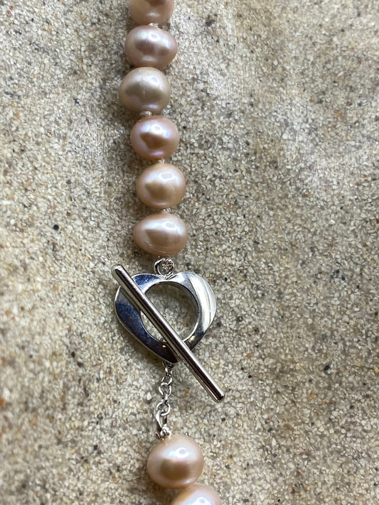 Vintage Hand Knotted Pink Pearl 18 inch Necklace