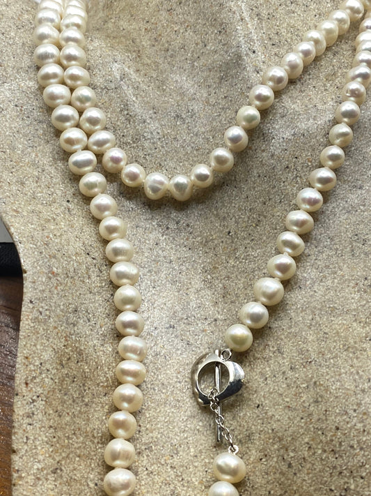 Vintage Hand Knotted White Pearl 45 inch Necklace