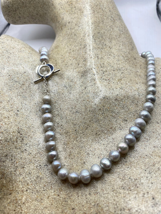 Vintage Hand Knotted m Gray Pearl 18 inch Necklace
