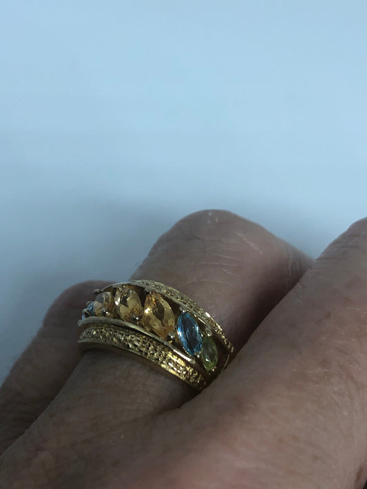 Vintage Citrine Golden 925 Sterling Silver Gothic Ring Size 7