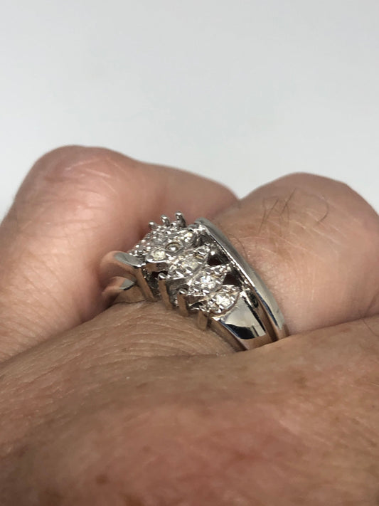 Vintage Clear White Sapphire 925 Sterling Silver Cocktail Ring Size 7