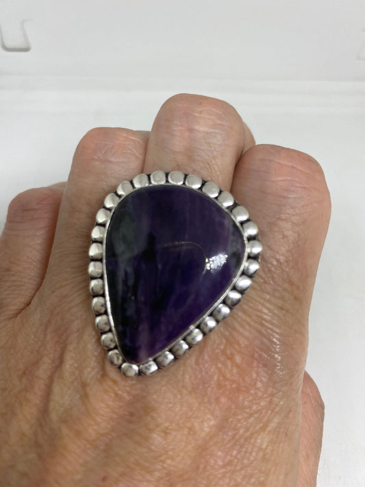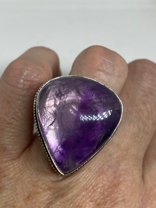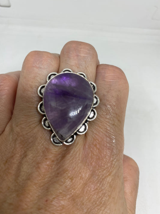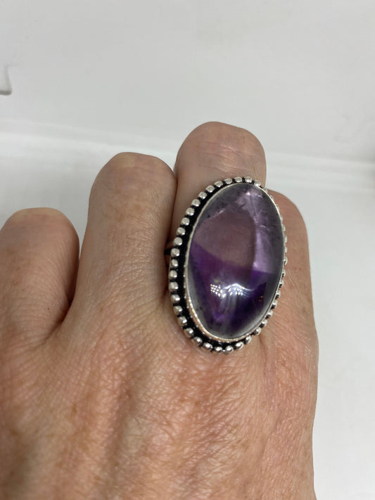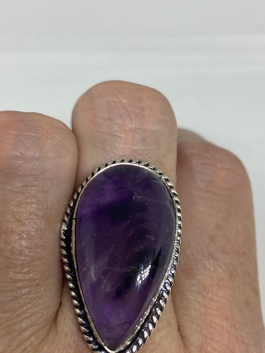 Purple Amethyst in Silver Ring Size 8 Vintage