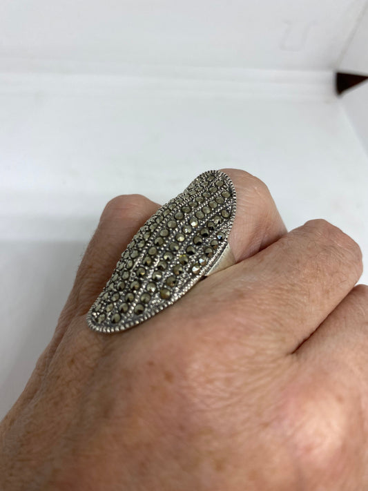 Vintage Handmade Genuine Swiss Marcasite Setting 925 Sterling Silver Gothic Ring