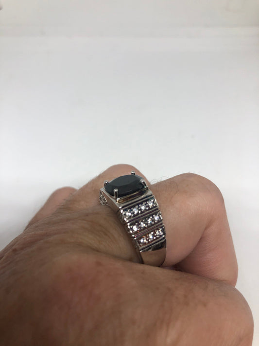 Vintage Black Onyx Clear White Sapphire 925 Sterling Silver Cocktail Ring Size 8.25