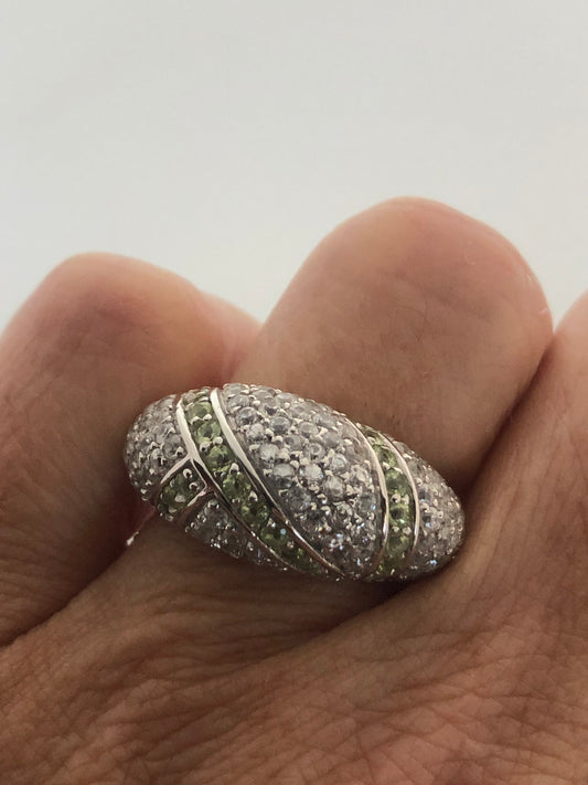 Vintage Handmade Genuine Green Peridot 925 Sterling Silver Ring Size 8