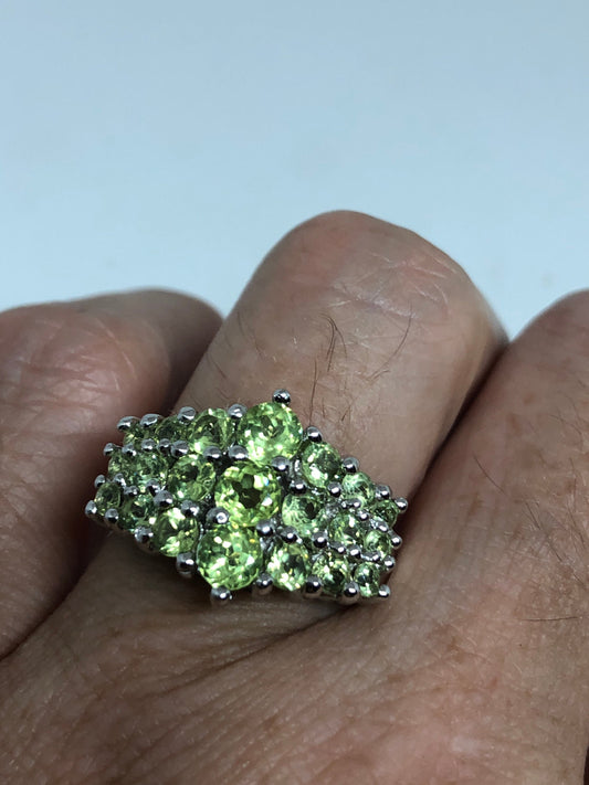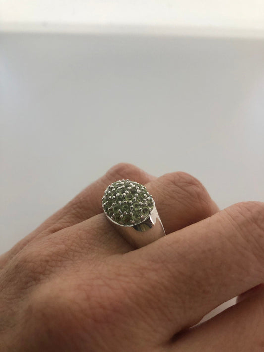 Vintage Handmade Genuine Green Peridot 925 Sterling Silver Ring Size 7