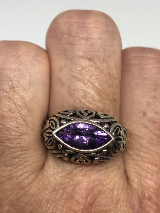 Vintage Purple Amethyst Ring 925 Sterling Silver Gothic Size 8