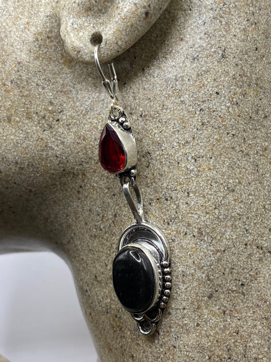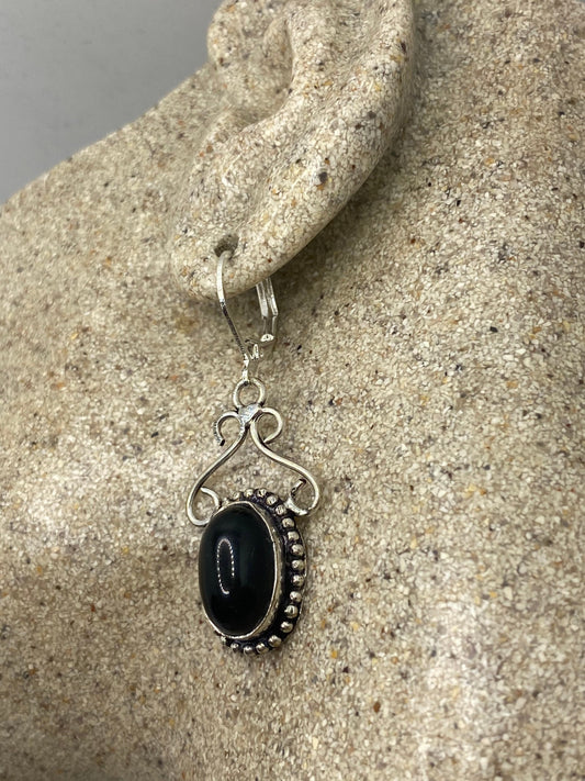 Vintage Black Earring Onyx 925 Sterling Silver Deco Dangle Chandelier