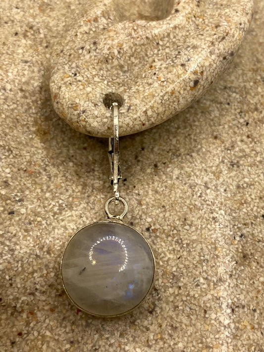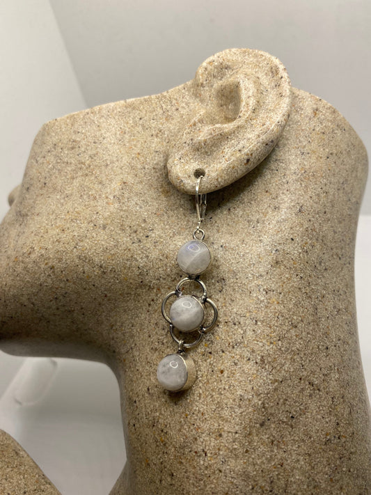 Vintage Rainbow Moonstone Sterling Silver Lever Back Dangle Earrings