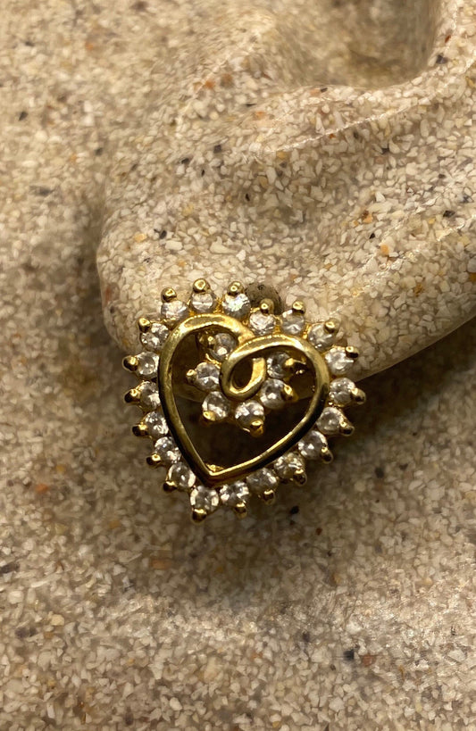 Vintage Diamond Heart Studs Golden 925 Sterling Silver Earrings
