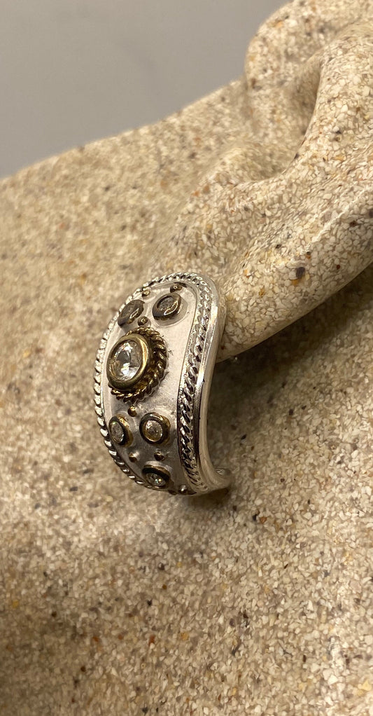Vintage Genuine White Sapphire 925 Sterling Silver Dangle Hoop Earrings