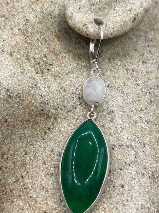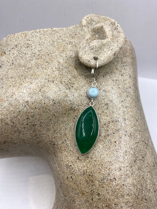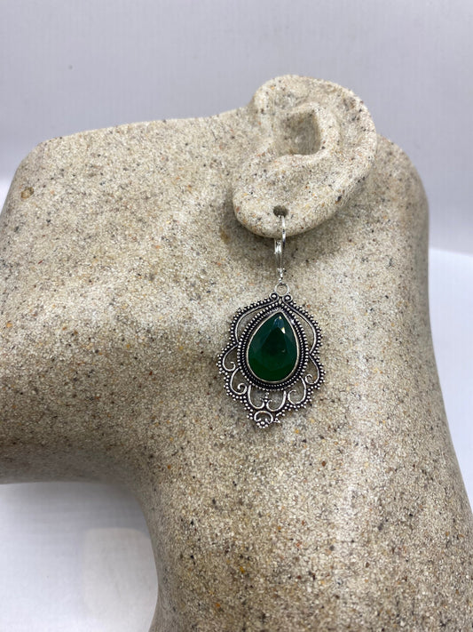 Vintage Green Onyx Earring 925 Sterling Silver Deco Dangle Chandelier