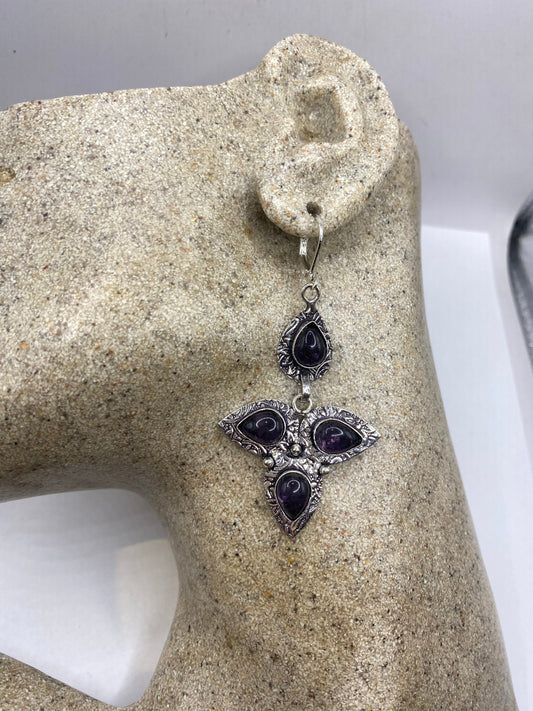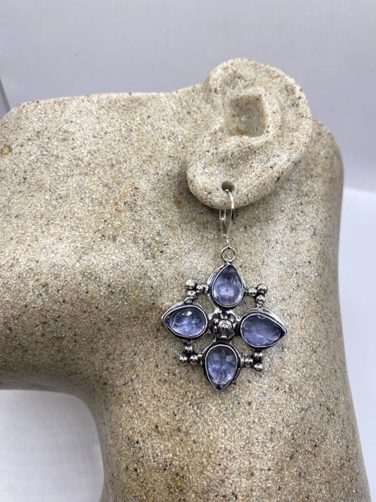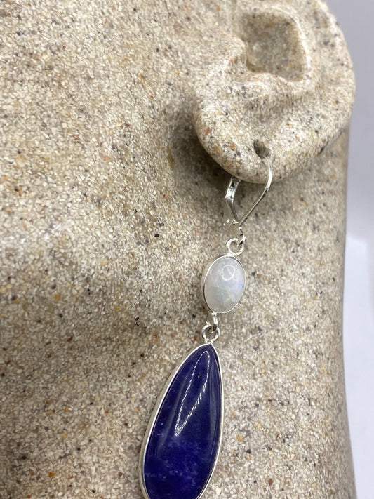 Vintage Blue Lapis Lazuli Iolite Earrings Silver Dangle