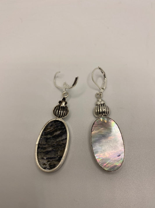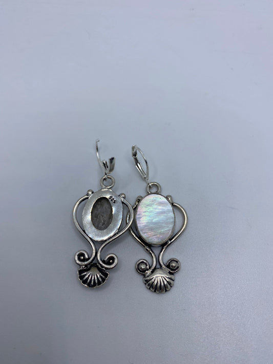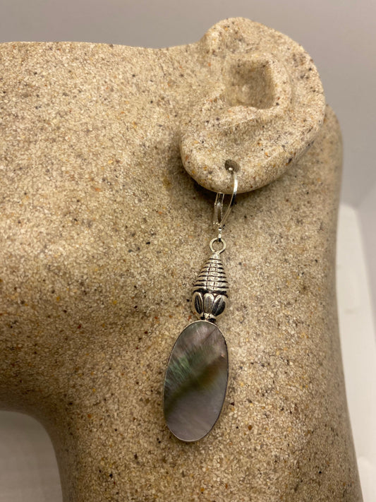 Antique Vintage Mother of Pearl Silver Heart Dangle Earrings